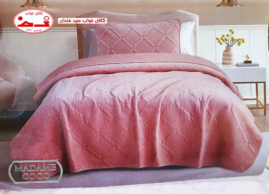 پارچه مخمل یکی از نرم ترین و دلپذیرترین پارچه هاست لمس آن حس گرما و آرامش را القا می کند و در تماس با پوست، حس لطیف و دلنشینی ایجاد می کند. در نور طبیعی یا مصنوعی سطح براق مخمل جلوه ای مجلل و خاص به اتاق خواب می دهد. با وجود ظاهر لوکس، روتختی یک نفره پنبه دوزی مادام کوکو کالباسی به راحتی با ماشین لباسشویی قابل شستن می باشد و مقاومت خوبی در برابر تغییر رنگ یا چروک دارد.